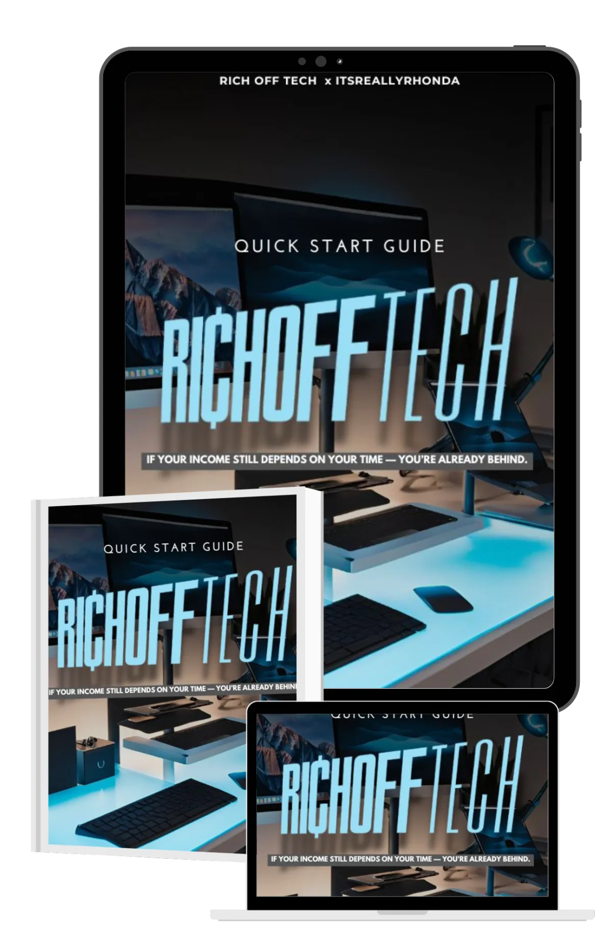 The Rich Off Tech Quick Start Guide is completely free — it’s your first win. Once you’re ready to take the next step, the Rich Off Tech Starter Kit is an affordable upgrade that shows you exactly how to build your first system and scale it. You’re never pressured; you move at your own pace.